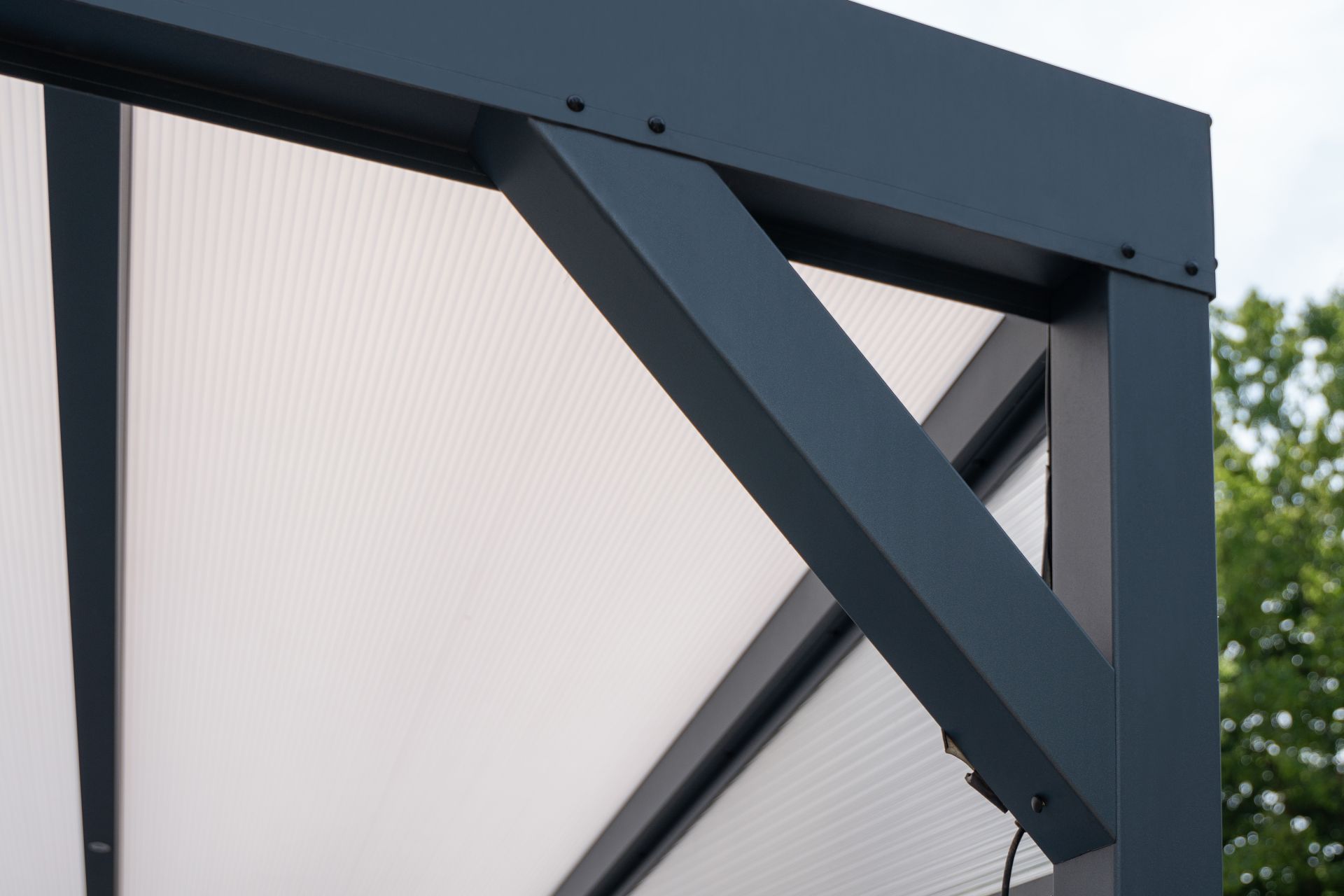 Nie ma potrzeby montowania markiz do zadaszeń wykonanych z poliwęglanu mlecznego. Poliwęglan idealnie rozprasza światło które jest delikatniejsze dla naszych oczu i zapewnia lepsza ochronę przed nasłonecznieniem w gorące dni.