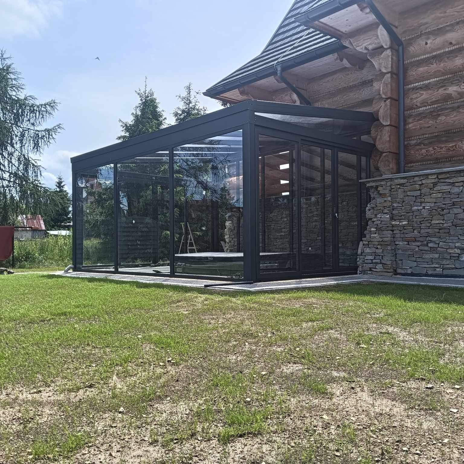 Zabudowa szybami przesuwnymi ramowymi w górskiej chacie